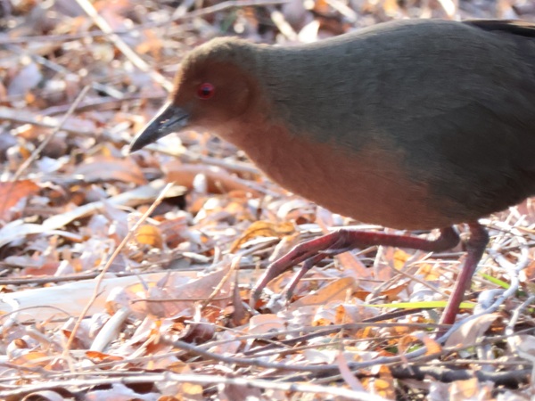 さらに、ヨシ原から出て来てこちらの足元5mほどのところまで近寄ってきました。柳の根元でしばらく落ち葉をひっくり返したりして採餌。
