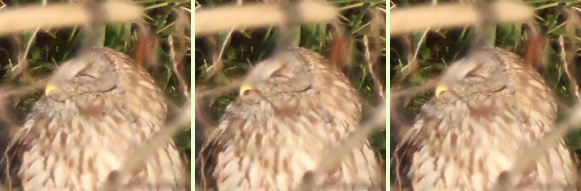 6:45 ふと端の方を見たら、2/19と同じ木立にフクロウがいた。さっきまではいなかったはず…なので、奥から出て来たのかも知れません。